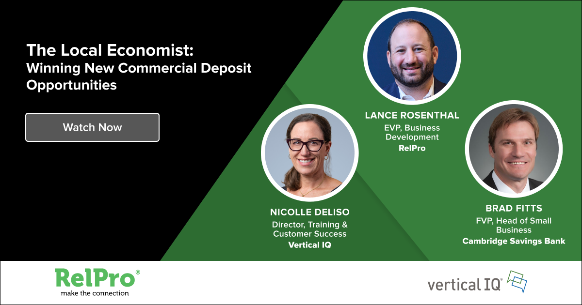 In this webinar, RelPro’s Sara Allen, IBISWorld’s Jim Fuhrman, and BOK Financial’s Cashin White discuss how market intelligence equips advisory-first bankers to identify the right prospects, anticipate client needs, and uncover hidden deposit opportunities before competitors do.